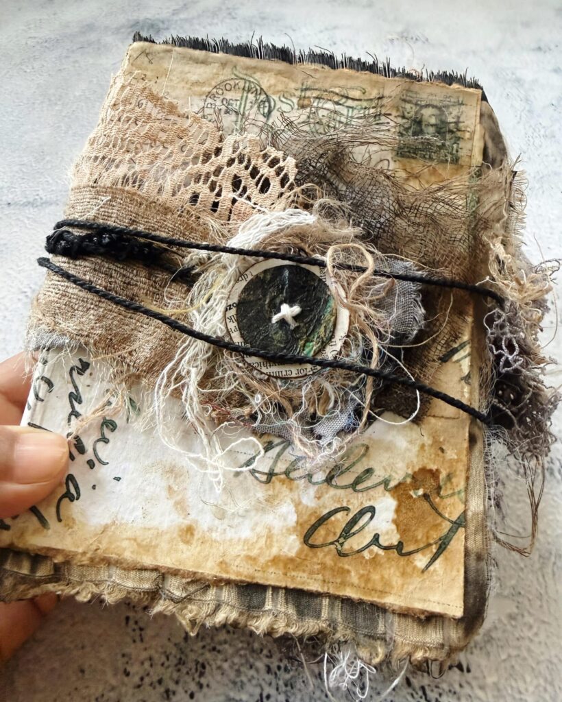 Hands-on mixed media art journaling classes with step-by-step guidance, focused on intuitive process and layered textures.