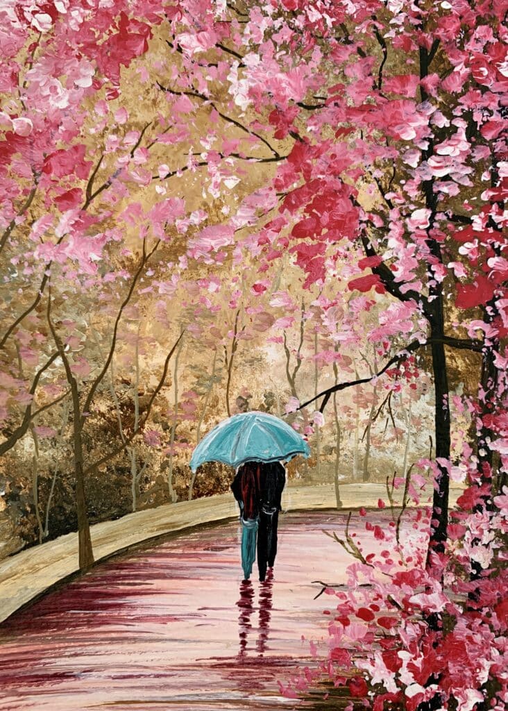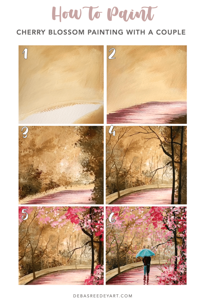 Hello and welcome to another easy acrylic painting tutorial where we learn to create a Cherry Blossom painting with a couple walking using acrylics.