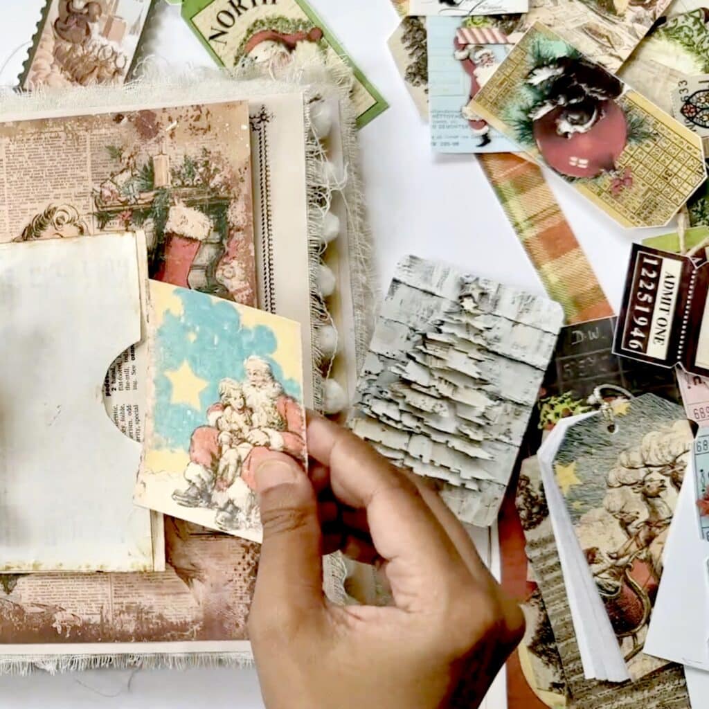 It also comes from my love for handmade journals and the quiet joy of December. I’ve always been drawn to that feeling of looking through a frosted window — the warmth inside, the magic outside — and I wanted to capture that in a journal.