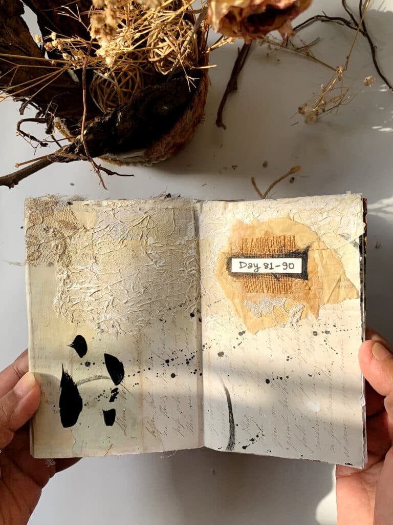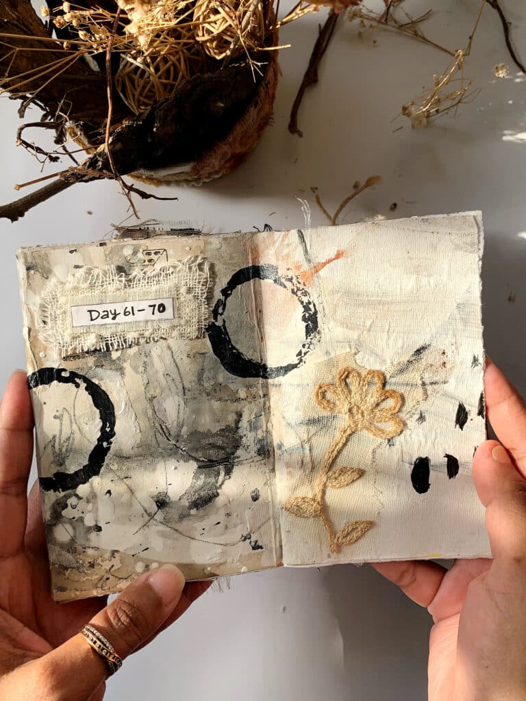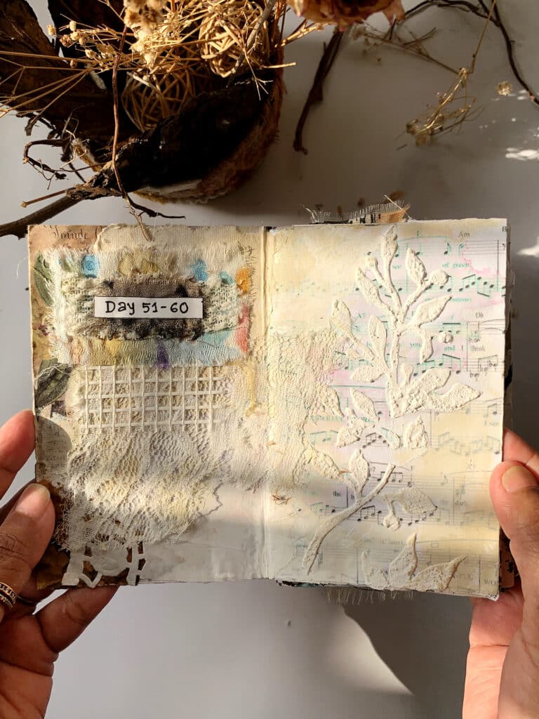 If you’re working on your own art journal, you can try this approach—start with collage, build slowly, and let the page guide you.