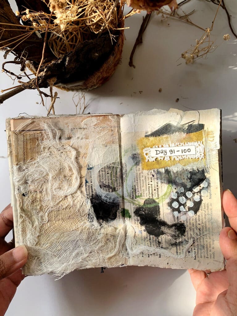 Learn how to use found papers & fabrics & discarded boxes, and turn them into beautiful art journals that feels inviting to work in. Click here to join.