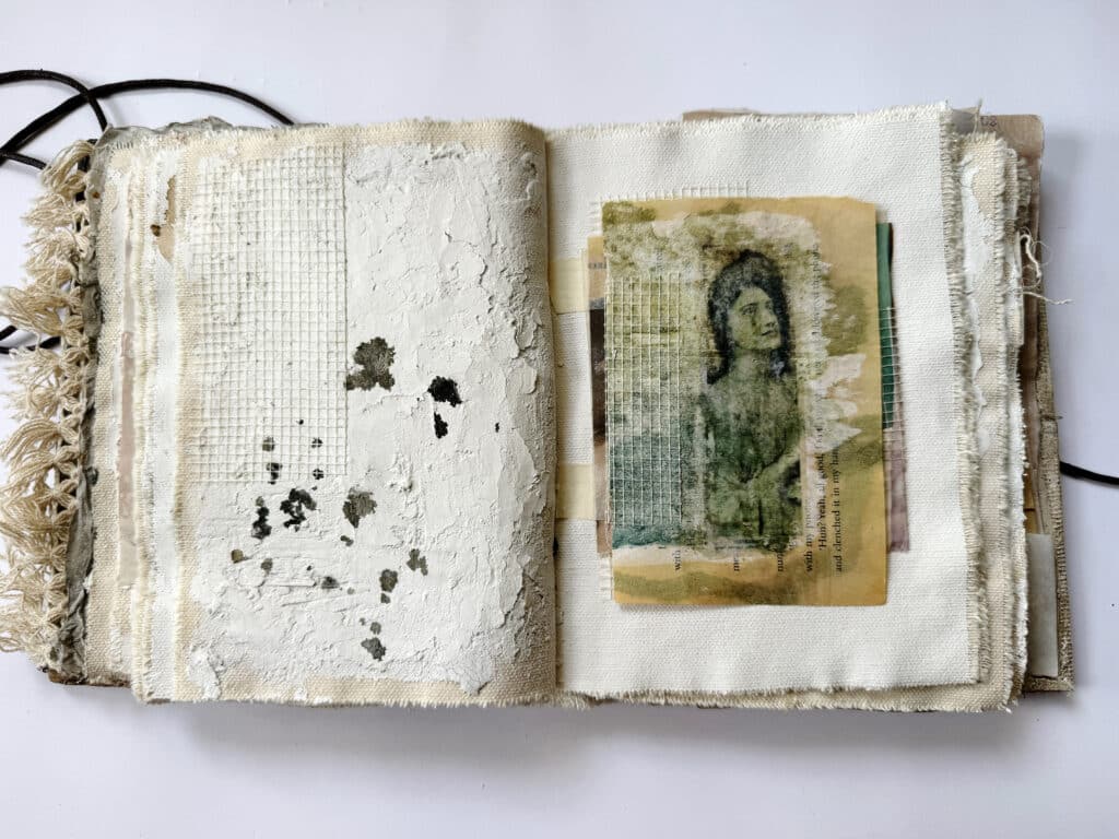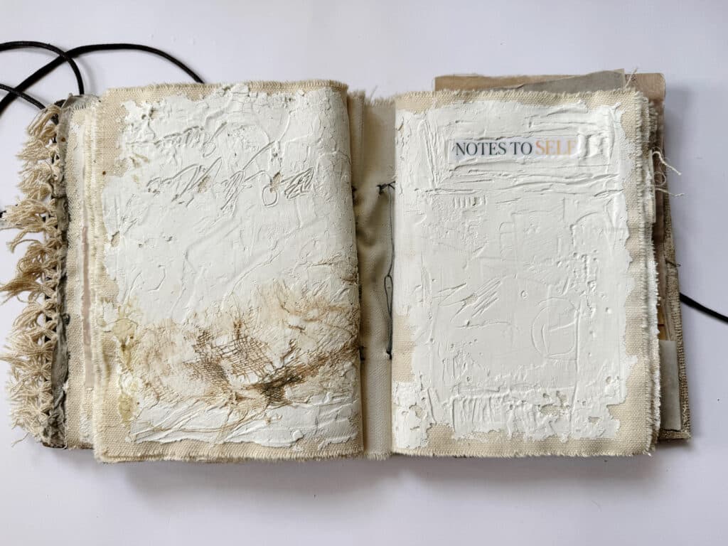 There’s something magical about holding a fabric plaster art journal in your hands — the weight, the raw edges, the imperfect cracks, and the soft chalky texture that almost feels alive.