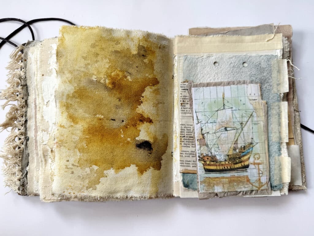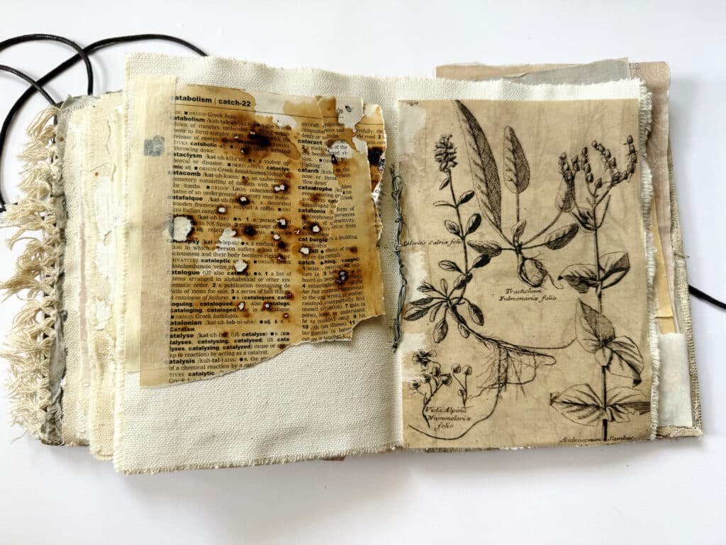 I first discovered this project through Jeanne Oliver’s free class: Fabric Plaster Art Journal.