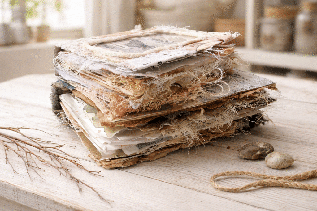 You have a drawer full of “beautiful scraps” (paper, fabric, ephemera) and a quiet guilt for not using them.