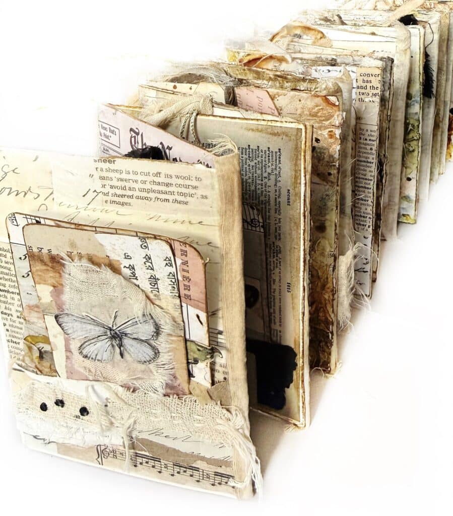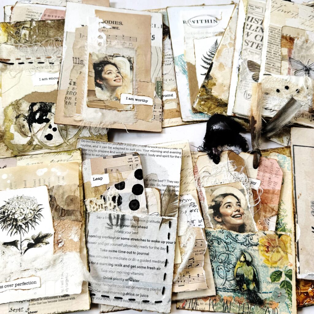 You’ll learn how to turn leftover scraps, torn papers, and forgotten textures into a tactile concertina artist book filled with affirmations, softness, and meaning.