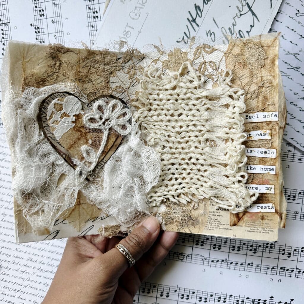 A warm, layered heart collage journal page