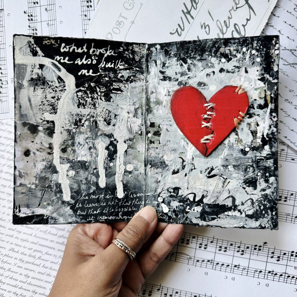 “I joined thinking I would just learn some art journaling techniques, but it became something much deeper. The heartbreak page especially helped me process emotions I hadn’t named yet.”