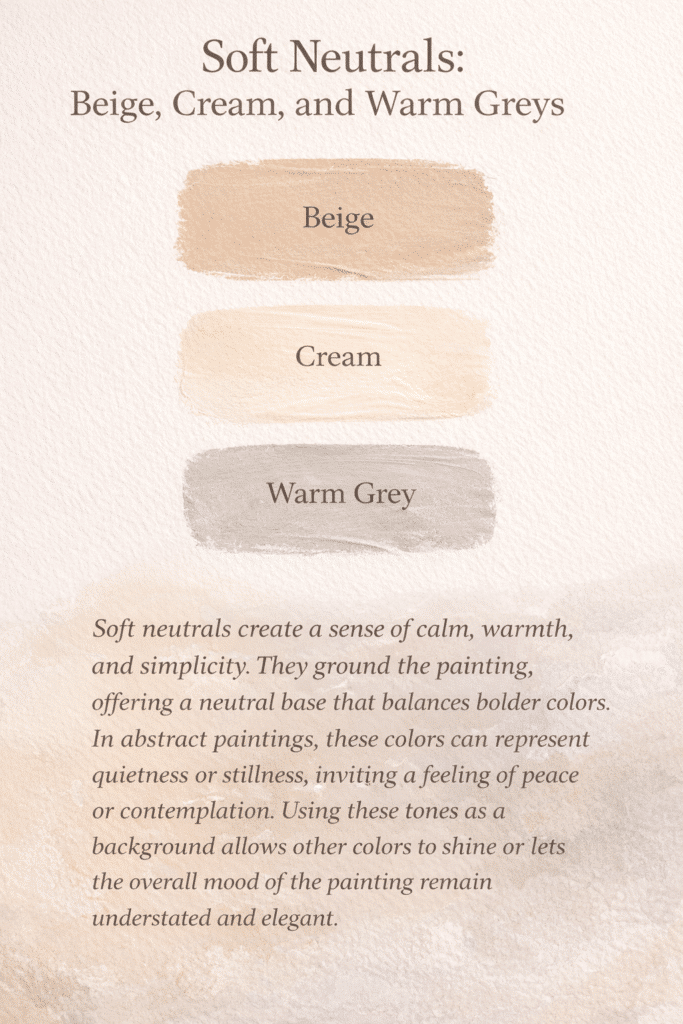 Muted yellows carry a quieter energy compared to their brighter counterparts. Soft yellows are about optimism, hope, and light, but when muted, they bring a more subtle energy—representing quiet joy and gentle warmth. They can act as highlights or delicate focal points in an abstract work.