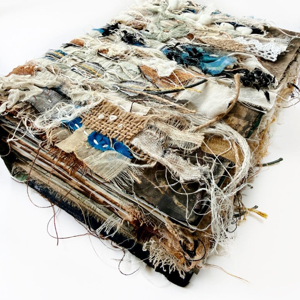 A soulful mixed-media art journal woven with paper, textile, and intentionÂ