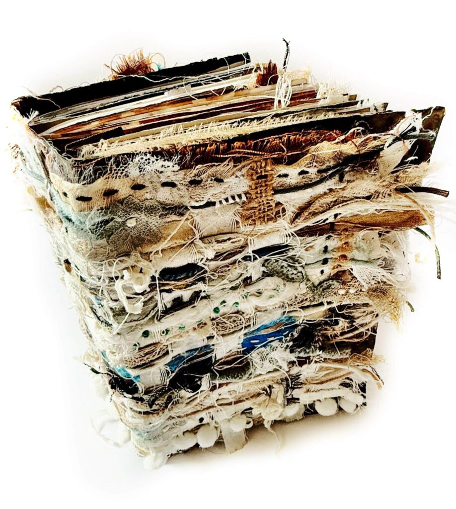 â  A soulful handmade journal built from woven fabrics, dyed papers, and your own creative truth.